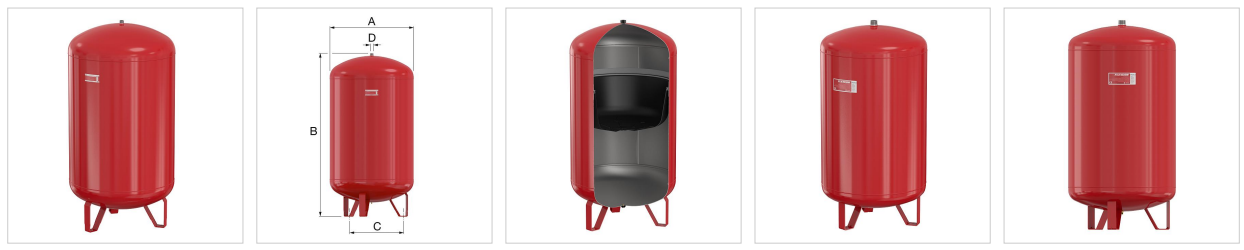 • Максимальное рабочее давление: 6,0 бар Расширительные баки соответствуют EN13831.