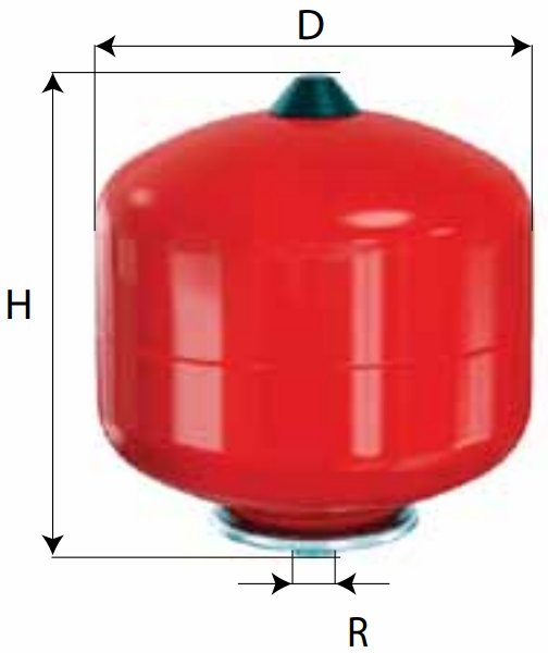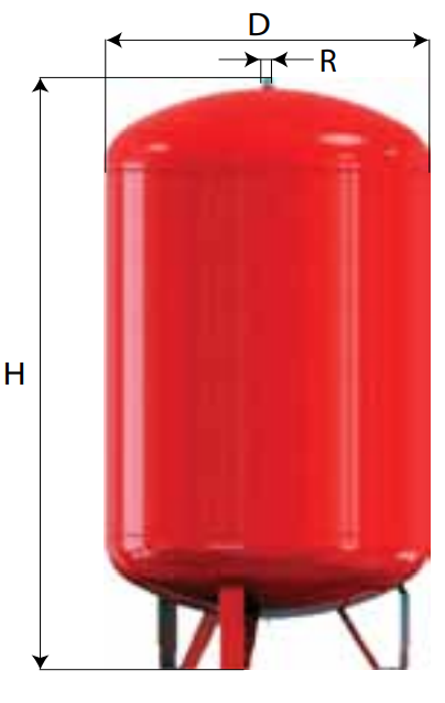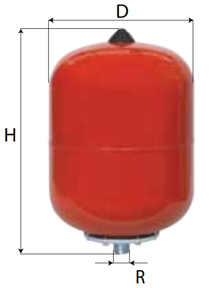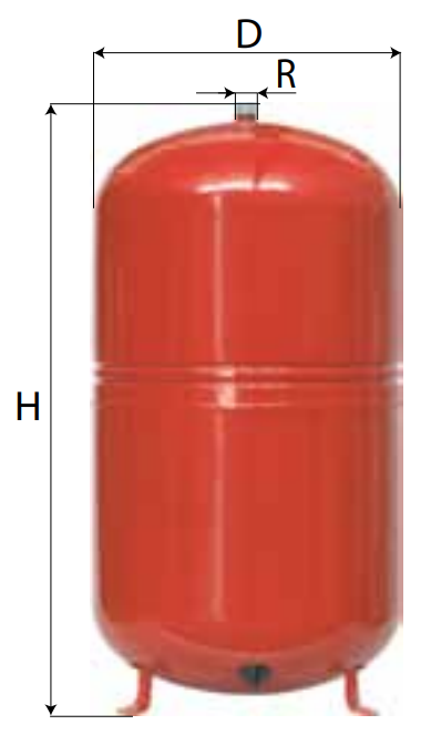 | Модель изделия | Артикул | Раб. объем, (л) | Макс. раб. давление, (МПа) | Диаметр D | Высота H | Масса, (кг) | Присоединение, внешняя резьба (R) |